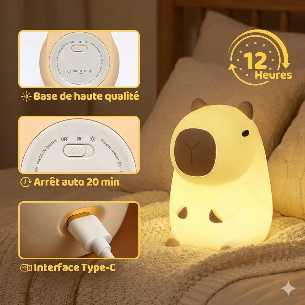 Veilleuse LED Capybara Rechargable - Cadeau parfait 🎁